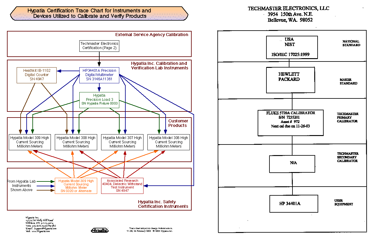 Certified Performance Verification or Calibration Service for Hypatia Instruments